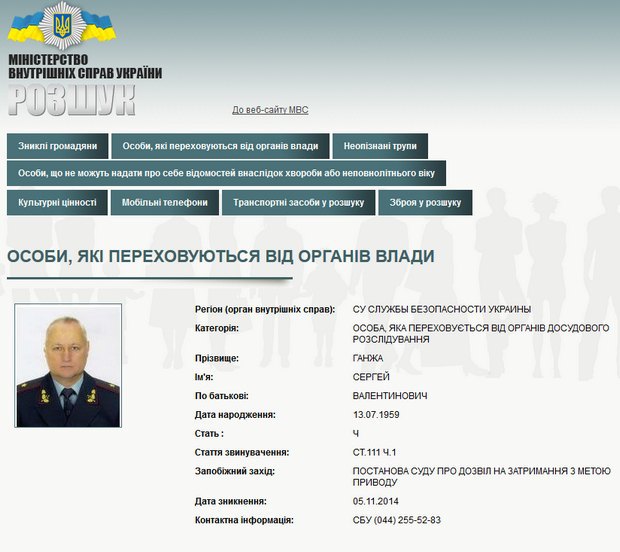 На цій посаді, Сергій Ганжа зліпив справу “Васильківських терористів”, які, ніби, хотіли підірвати памятник Леніну. Також він розробив, а точніше, підписав вже підготовлену ФСБ операцію по розгону Майдану у лютому 2014 року під назвою “Бумеранг”, заливши Хрещатик кров’ю Небесної Сотні.