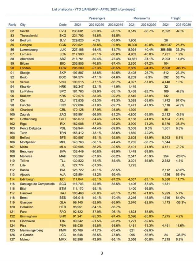 Международный Совет Аэропортов Европы (АСI Europe) опубликовала отчет, в который вошел 341 самый большой аэропорт Европы по количеству пассажиров.
