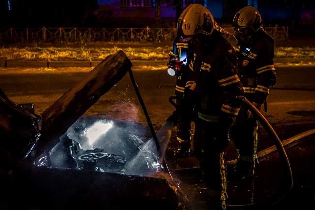 Пожар произошел у дома №3 на улице Гната Хоткевича. Автомобиль был припаркован на обочине.