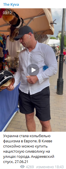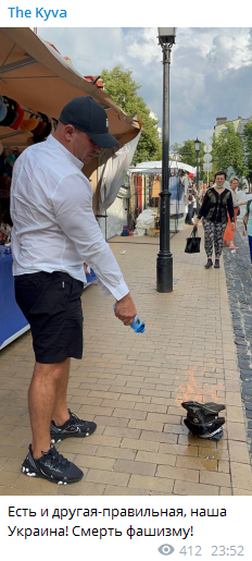 Народный депутат от фракции "Оппозиционная платформа – За жизнь" Илья Кива устроил "перформанс" в центре Киева с сожжением сувенирной форменной фуражки, которая продавалась на Андреевском спуске. Он заявил, что Украина якобы – "колыбель фашизма" в Европе.