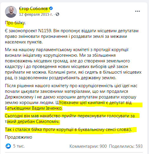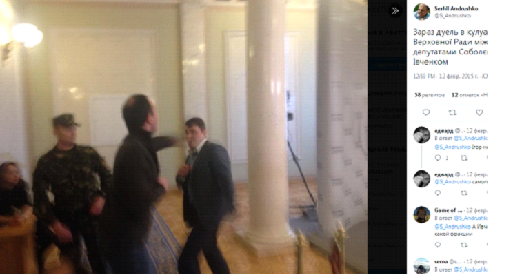 В 2015-м году СМИ взорвала инфа о том, что депутат Вадим Ивченко дважды!! подрался с Егором Соболевым из «Самопомощи», когда рассматривался вопрос о земле.