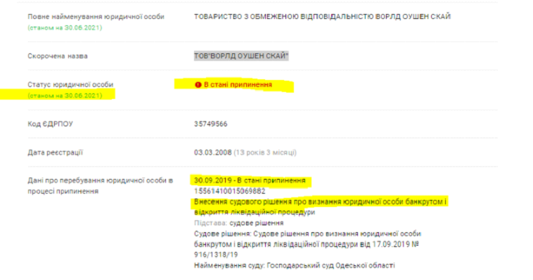 Отметим, по информации ресурса YouControl, эта компания на данный момент находится в стадии ликвидации.