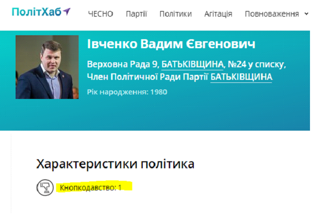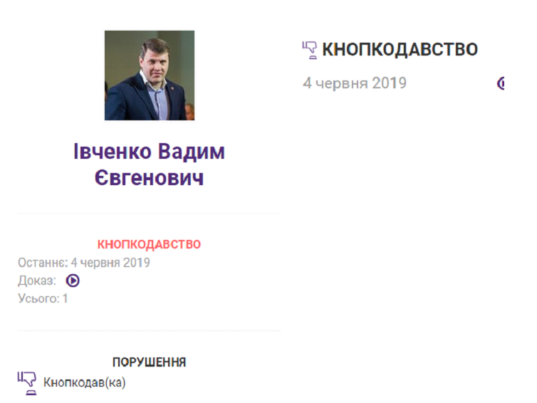 По данным сайта «ПолитХаб», Вадим Ивченко был замечен в кнопкодавстве.