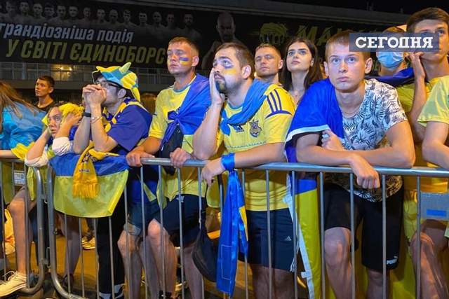 На обнародованных фотографиях из столичной фан-зоны видны печальные лица украинских болельщиков.