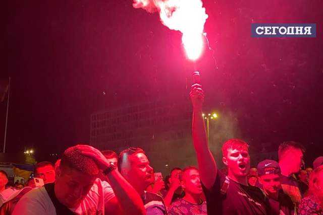 А после объявления окончательного счета, они скандировали "Украина". К слову, последние минуты матча Украина – Англия болельщики встретили огнем. В фан-зоне они подожгли пиротехнику.
