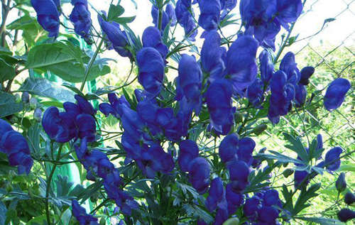 Аконіт (друга назва "вовче прокляття" - через використання його у отруєнні м’яса для хижаків) росте здебільшого в горах, може сягати метра заввишки. Він має квітки синього чи фіолетового кольору. Якщо рослина попала у рот, то виникає біль і опіки. Крім того, з’являється нудота, розширення зіниць, слабкість чи параліч, проблеми з диханням та серцем.