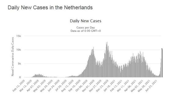 Нидерланды отреагировали на рост новых случаев и со вчерашнего дня закрыли все клубы, дискотеки, концерты.