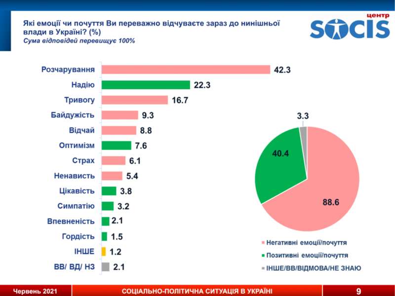 42,3% признались, что испытывают к нынешним властям разочарование. Но 22,3% – надежду. В целом 88,6% испытывает негативные эмоции, 40,4 – позитивные.