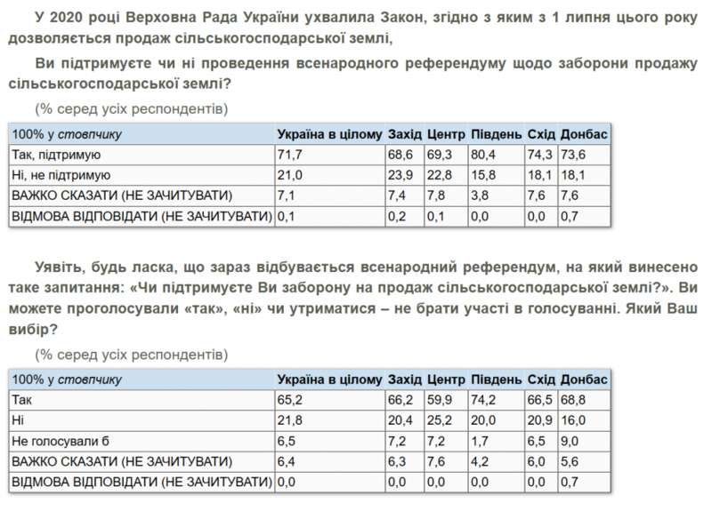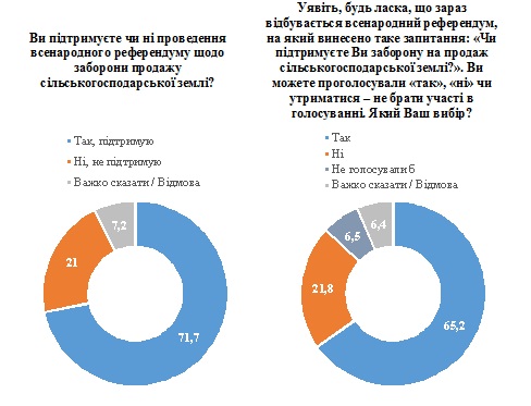71,7% поддерживают проведение референдума о запрете продажи сельскохозяйственной земли. В случае его проведения всех респондентов 65,2% поддержат запрет (среди тех, кто принял бы участие в голосовании – 74,9%).