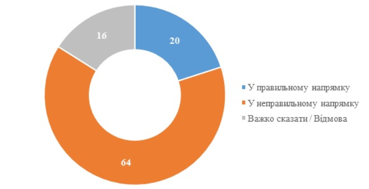 По мнению респондентов КМИС, 64% считают, что дела в стране идут в неправильном направлении (в правильном – 20%).