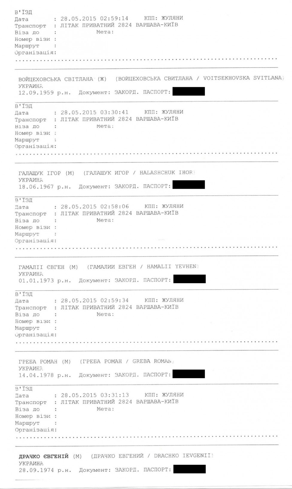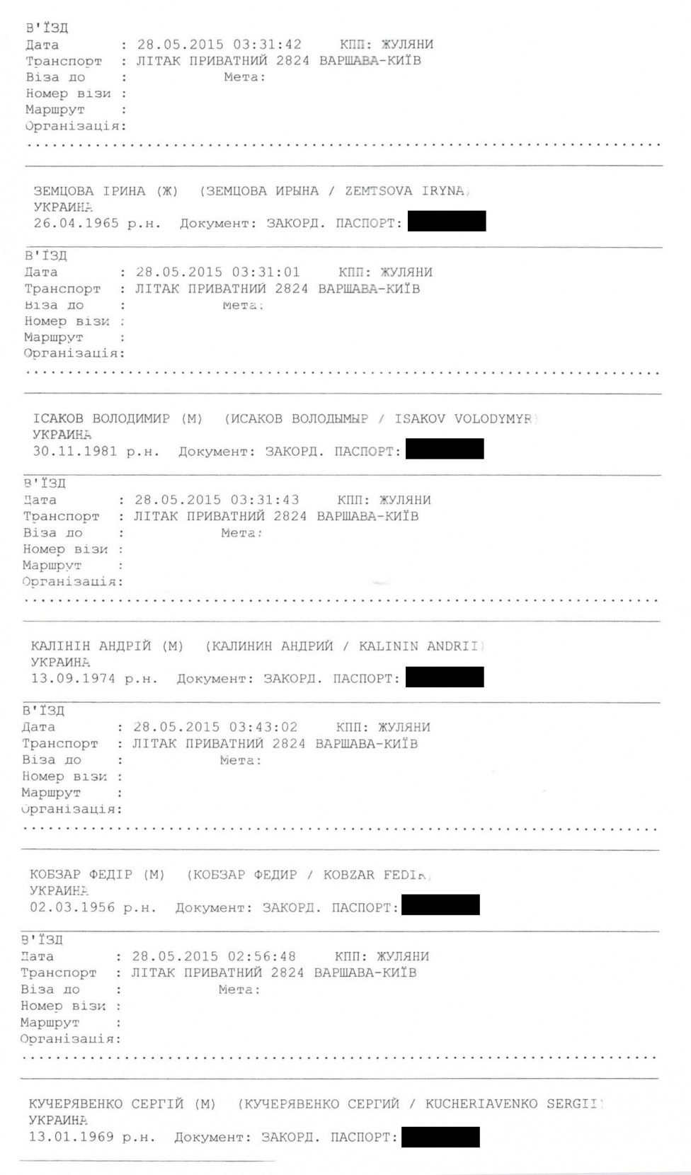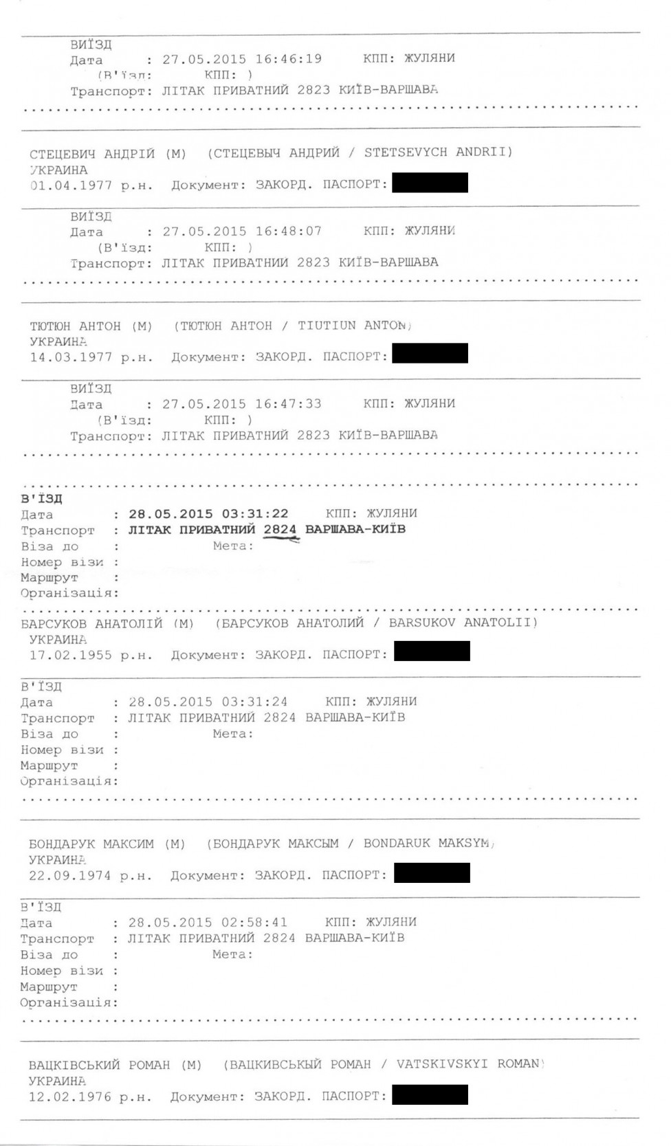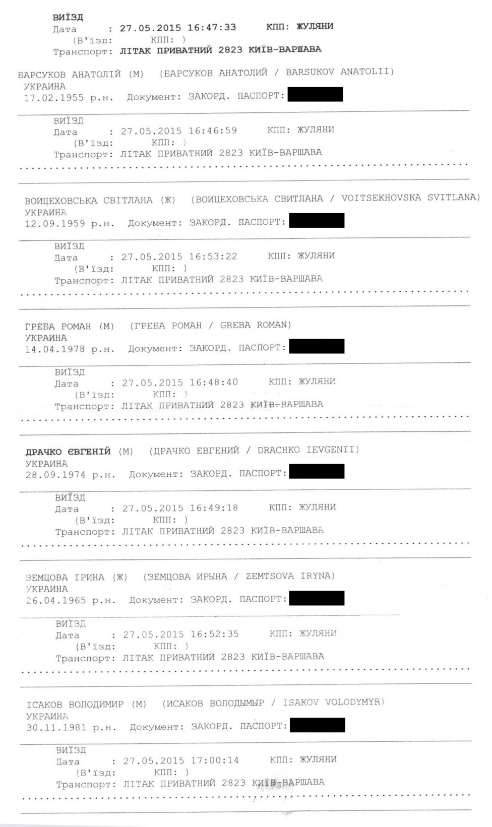 Нам точно известен сам факт полета бизнес-чартером. В распоряжении журналистов Politeka оказались копии документов с данными о регистрации высшего руководства «Ощадбанка» на чартерный рейс №2823 «Киев-Варшава» от 27 мая и о прохождении пограничного контроля по прилету чартерным рейсом №2824 «Варшава-Киев» от 28 мая. По информации источника, который передал документ, чиновники успели в столицу Польши к началу футбольного матча 27 мая, а в половине четвертого утра 28 мая вылетели назад в Киев. На борту самолета была почти вся топ-верхушка «Ощадбанка»: глава госучреждения Андрей Пышный с женой Людмилой, заместители главы банка Анатолий Барсуков, Евгений Драчко, Ирина Земцова, Андрей Стецевич, Антон Тютюн, члены наблюдательного совета Светлана Войцеховская и Роман Греба. Всего в Варшаву спецрейсом добирались 15 пассажиров, а на обратном пути с матча в самолете оказалось уже 27 человек.