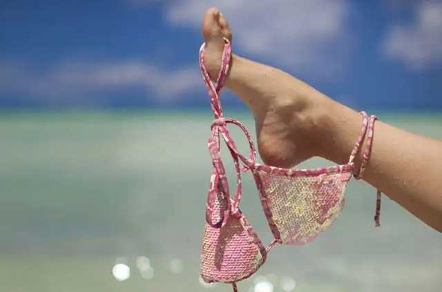В кадре видно, как туристка стоит на пляже в одних плавках, но верх купальника решила снять. Женщину не смущало то, что на курорте находится много людей, в том числе и дети.