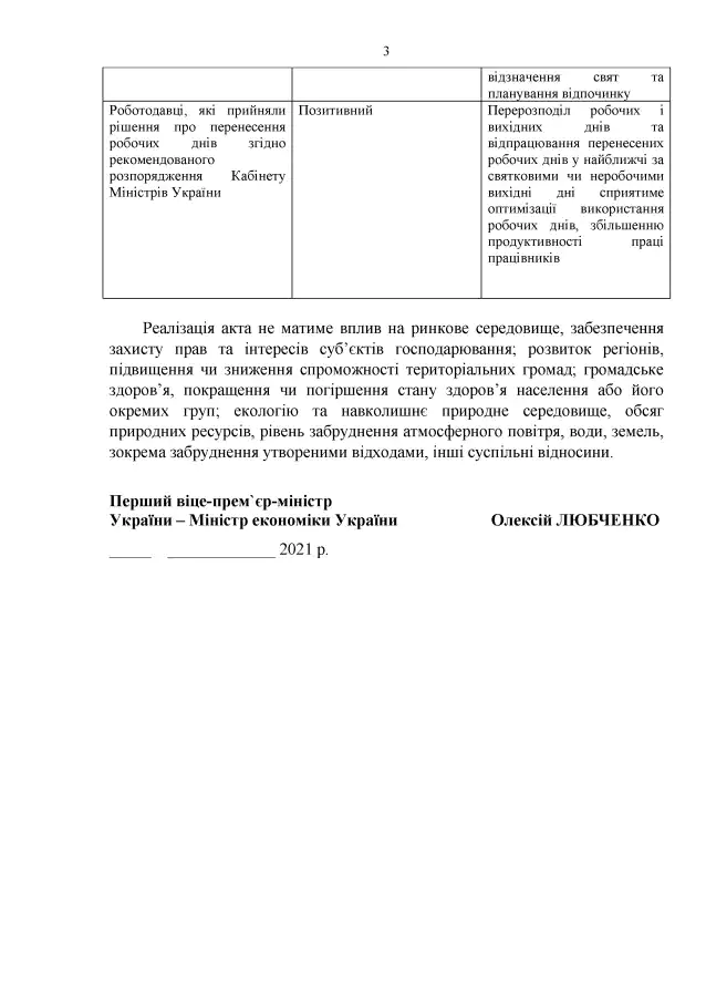 Отметим, Кабинет министров перенес в 2021 году три рабочих дня. Для работников, которым установлена пятидневная рабочая неделя с двумя выходными днями в субботу и воскресенье, рабочие дни перенесены с: пятницы 8 января на субботу 16 января; понедельника 23 августа на субботу 28 августа; пятницы, 15 октября, на субботу 23 октября. По четыре выходных дня будет на Рождество, на День независимости и на Покрову.