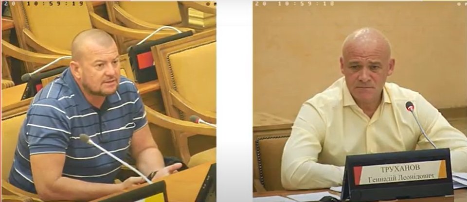 На фото: Виктор Кузнецов отчитывается о своей работе мэру Одессы Труханову
