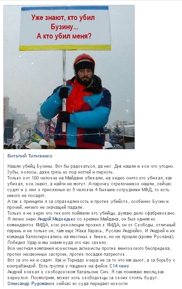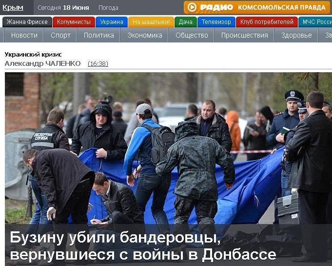 Також не дивує й те, що новину про затримання українських патріотів одразу ж підхопили російські ЗМІ, на шпальтах яких замайоріли заголовки на кшталт «Бузину вбили бандерівці».