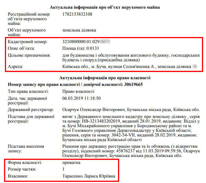 Крім того, кілька тижнів тому син Віталій Тарасенко подарував Кароліні Віталіївні квартиру на 73 кв. м по проспекту Правди. Це саме та квартира, яку вона придбала за кредитні кошти і за яку отримала відшкодування з бюджету. Очевидно вона її раніше подарувала сину, а тепер отримала назад. Цікаво, що за неї з бюджету отримала 1,4 млн грн компенсації, а от при даруванні оцінили її лише у 367 494 грн. Мабуть так зменшували свої платежі до бюджету.