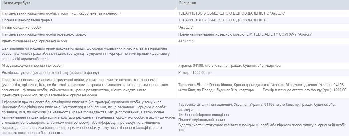 Бізнесу суддівська родина не має. Звісно, якщо не вважати фізичних осіб підприємців, у яких ліміти по виручці. Щоправда, син судді Віталій Тарасенко буквально місяць тому зареєстрував ТОВ «Акордіс», яке спеціалізується на діяльності у сфері права. Але й воно, вочевидь, не є платником ПДВ.