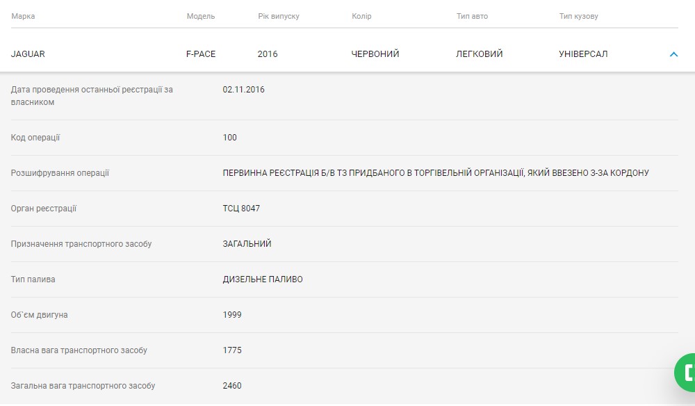 В Олександра Шакуна є більш новий і дорожчий транспорт. Це JAGUAR F-PACE 2016 року випуску за 1,5 млн грн.
