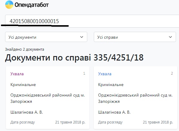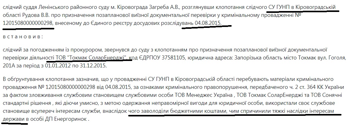 Обеими этими решениями судья Орджоникидзевского райсуда города Запорожья Шалагинова А.В. отказывает следователю в доступе к документам ООО «Токмак солар энержди» и проведении внеплановой проверки деятельности предприятия с 2012 года. Перспективы понятны, да и судебный реестр это подтверждает.
