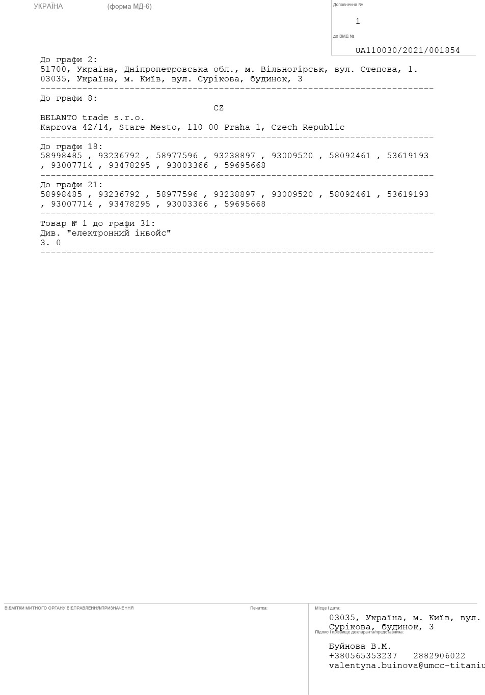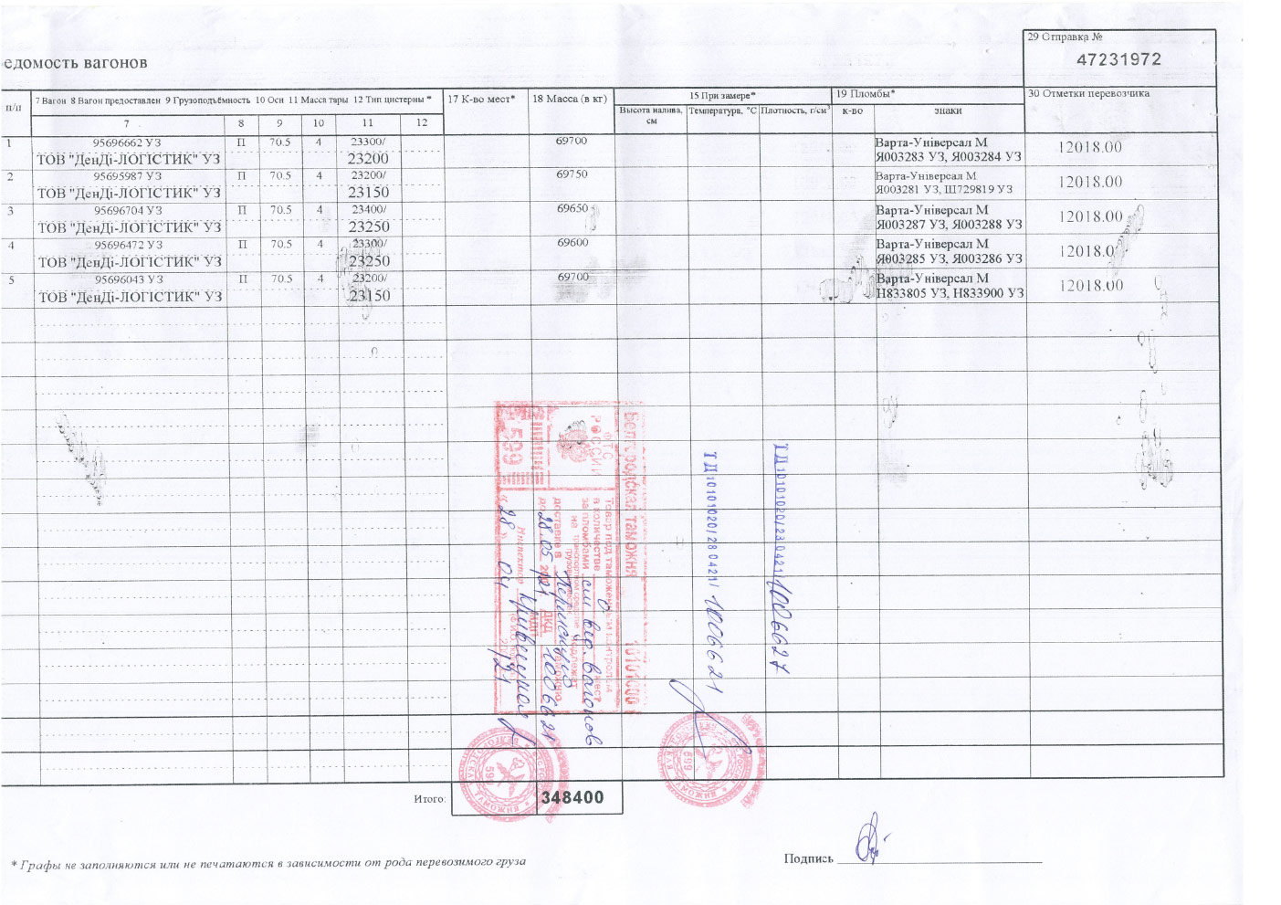 На документах стоят печати Харьковской таможни ГФС, а также Белгородской и Свердловской таможен. Там же на документе стоит печать ОГХК.