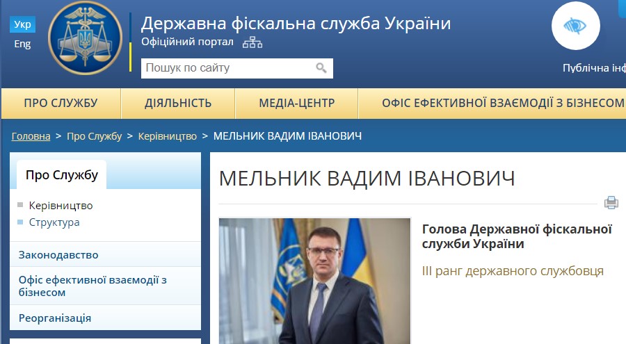 С декабря 2020-го Вадим Мельник – глава Государственной фискальной службы Украины.