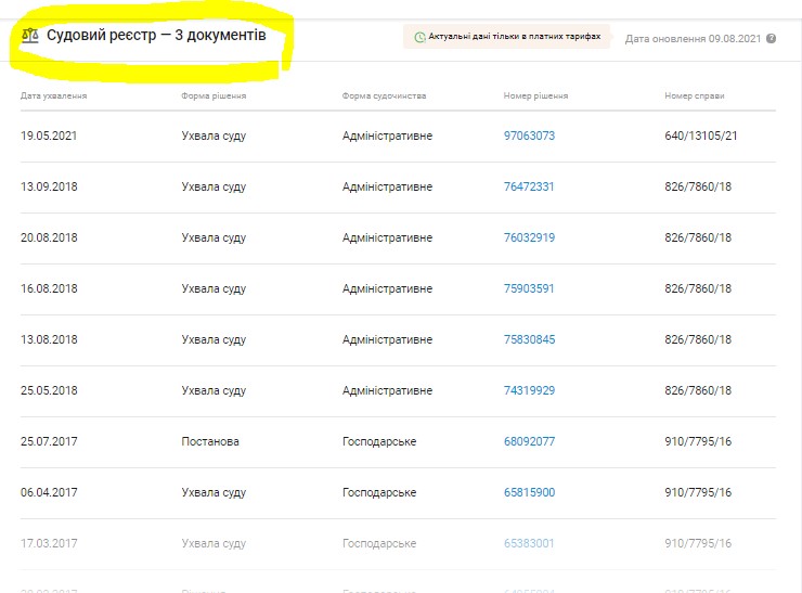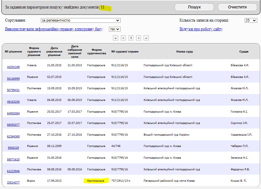 При поиске в судебном реестре именно Вадима Мельника, сервис выдает 21 судебный документ, 6 из которых – криминальные.