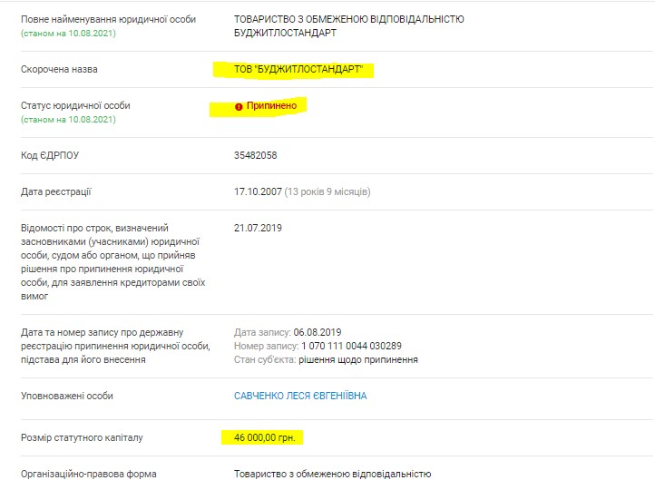 Также Мельник является бывшим директором в компании ТОВ "БУДЖИТЛОСТАНДАРТ", статусный капитал которой составляет 46 тысяч гривен. Статус компании – ликвидировано. При этом компания числится в 5 судебных делах.