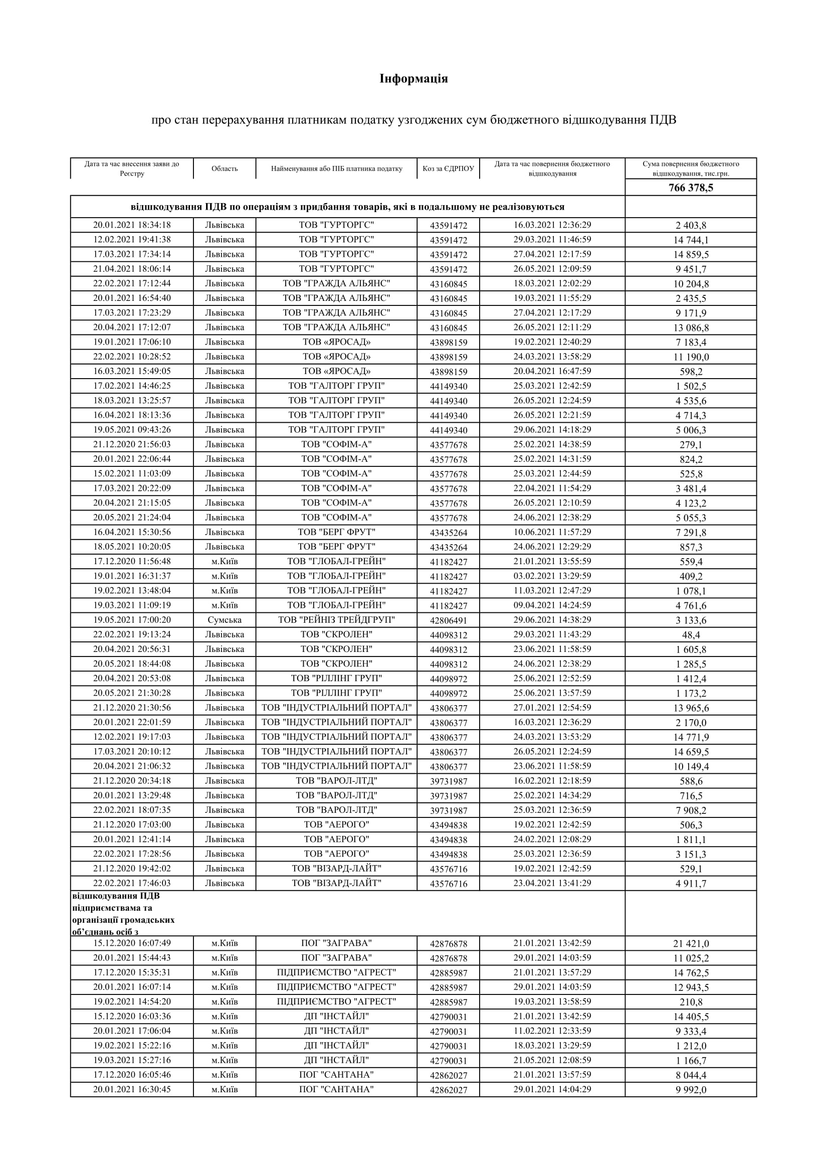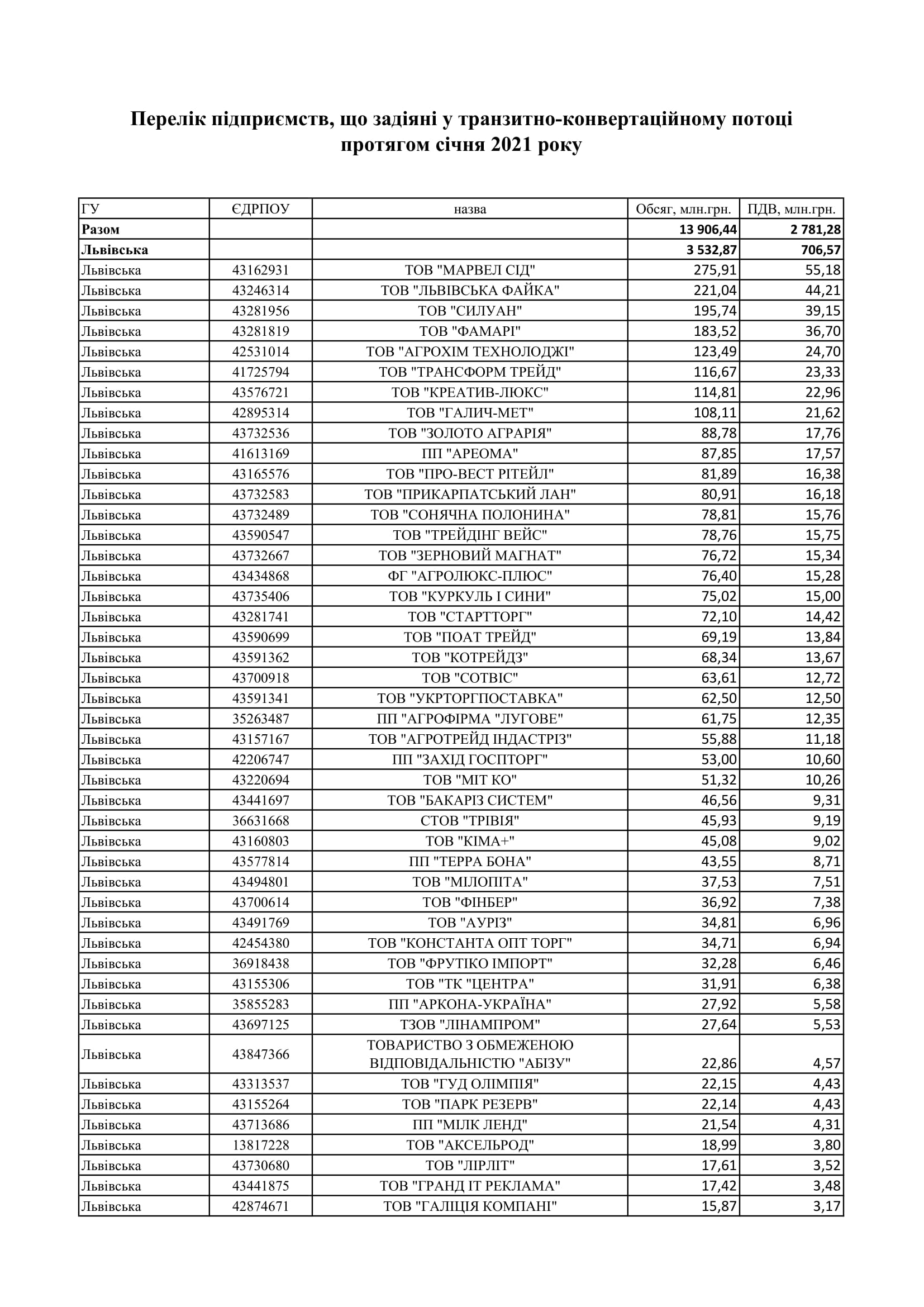 В распоряжении редакции оказались документы, которые подтверждают, что в следующие пять месяцев пребывания Любченко на посту главы налоговой службы ситуация не только не изменилась, но и усугубилась. Согласно данным, собранным аналитиками, объем транзитно-конвертационного оборота за период с января по май 2021 года составил 12,4 млрд грн. В деятельности схем задействовано около 1350 предприятий. Наибольшее количество таких налогоплательщиков ожидаемо приходится на управления во Львовской, Донецкой, Киевской, Харьковской, Одесской областях, а также в Киеве. Основные товарные группы, принимающих участие в конвертации: импортные товары, продукты питания, сигареты, горюче-смазочные материалы. Основная товарная группа на выходе - сельскохозяйственная продукция, предназначена для дальнейшего экспорта.