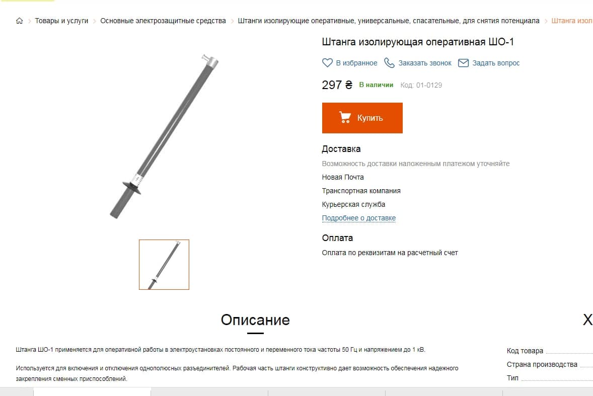 Оперативна ізолююча штанга ШО-1 коштує 633 грн/шт, в той час як середня роздрібна її ціна на торгових майданчиках – 297 грн/шт.