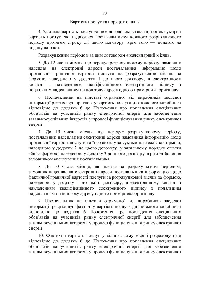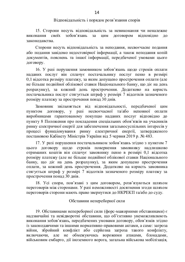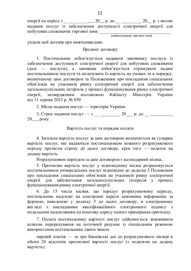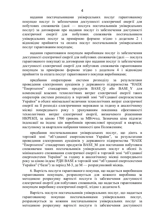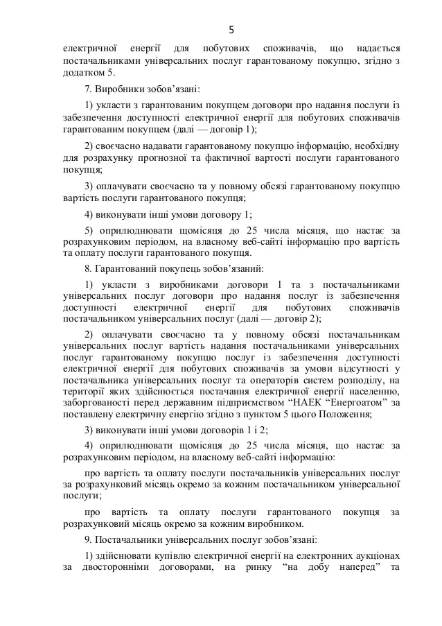 "Энергоатом" должен продать электрическую энергию государственному предприятию "Гарантированный покупатель" на октябрь и ноябрь 2021 года по двусторонним договорам на электронных аукционах по цене 150 грн/МВт·ч, в объемах, соответствующих корректировке на фактические данные о почасовых объемах потребления электрической энергии бытовыми потребителями в августе и сентябре 2021 года.