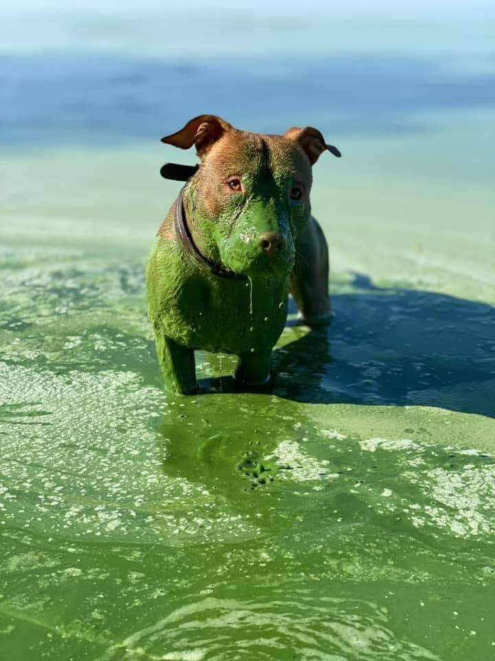 Фото собаки выложила в Фейсбуке Ирина Вербовская, которая 17 августа писала о чрезвычайной загрязненности Днепра неподалеку от Черкасс. Новым постом женщина подчеркнула, что река погибает из-за деятельности людей.