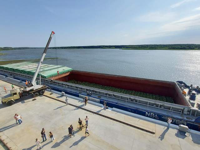 В филиал "Переяславская" прибыл буксир "Нодари Чантурия". Этот рейс стал юбилейным – 5 – в транспортировке бахчевых с Юга водами Днепра.