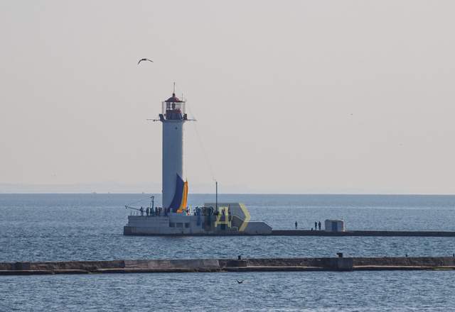На главном маяке Одессы взвился огромный флаг Украины: захватывающие фото