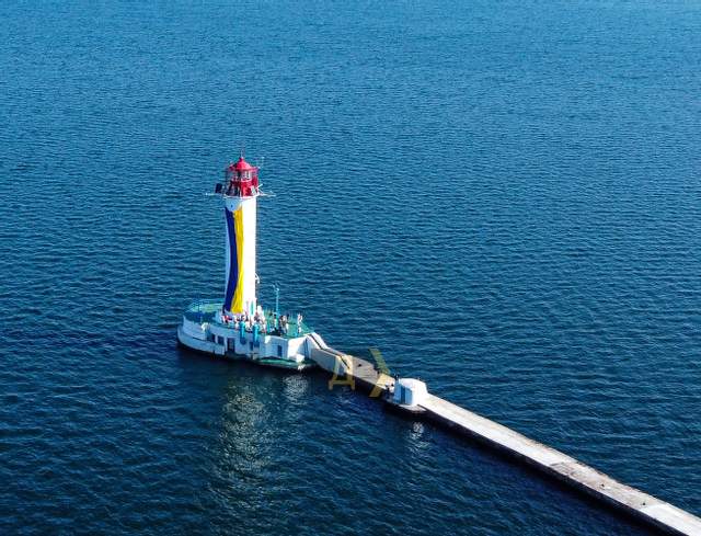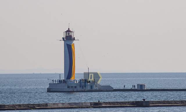 На главном маяке Одессы – Воронцовском – 21 августа развернули большой сине-желтый флаг. Полотнище размером 18 на 5 метров поднимается на всю высоту маяка.
