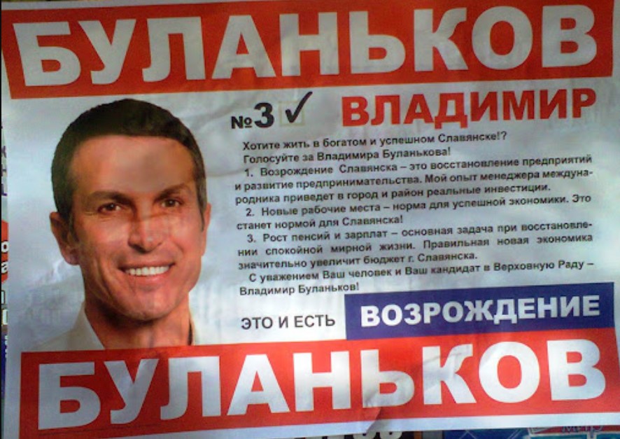 А вот уже в 2014-м году во время парламентских выборов Владимир Буланьков вышел из тени и пытался прорваться к госкормушке. Под красными флагами партии «Видроження» он собрался тогда «возрождать донецкий Славянск». Не получилось…