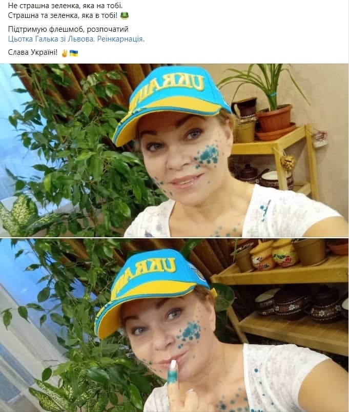 Сторонники Порошенко вымазались зеленкой в знак поддержки экс-президента