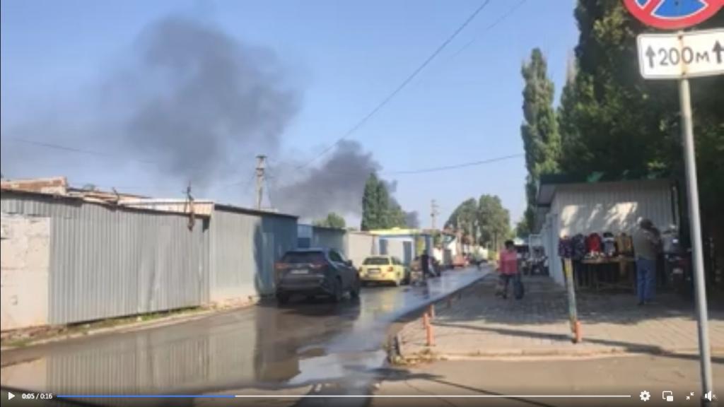 Корреспондент Наталья Нагорная на своей странице в Фейсбук показала несколько видеороликов, зафиксировавших дым от разрывов снаря