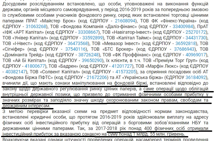 Суть схемы – махинации с облигациями внутреннего государственного займа (ОГВЗ). В результате масштабного сговора между представителями органов власти и бизнеса государство получило ущерб (минимум) в полтора миллиарда гривен. И это не голословное утверждение – так следует из материалов уголовного дела №62019000000000464, внесенных в Единый реестр 9 апреля 2019 года: