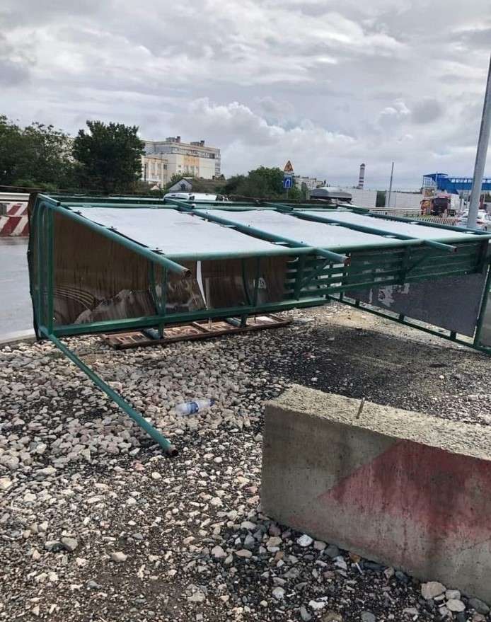 В посёлке Аэрофлотовский порывом ветра снесло остановку.