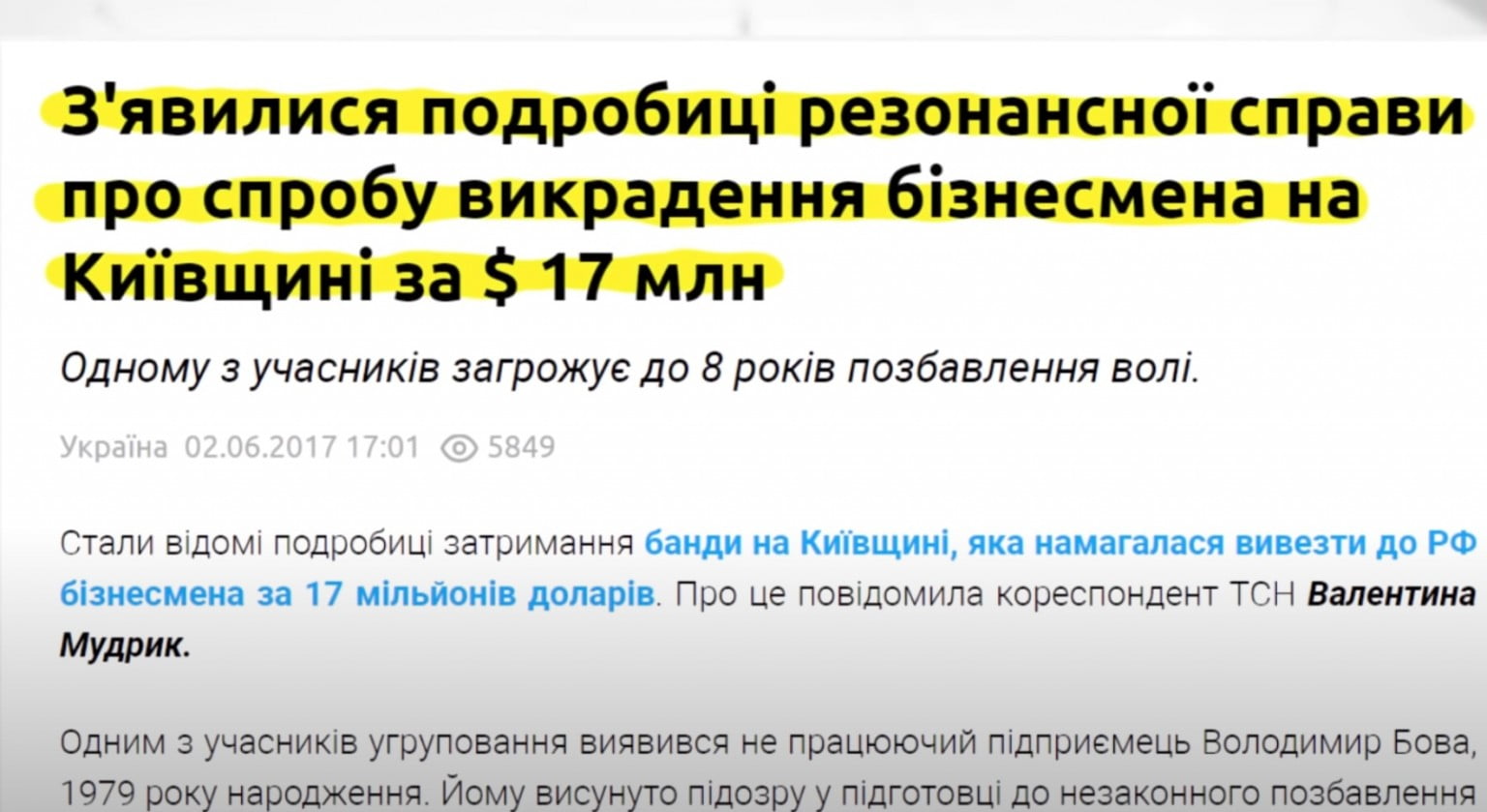Справа була ще у 2017 році, коли група осіб, до якої входив Володимир Бова, намагалася за 17 мільйонів доларів викрасти та вивезти до Росії власника Обухівського картонного комбінату Володимира Крупчака: