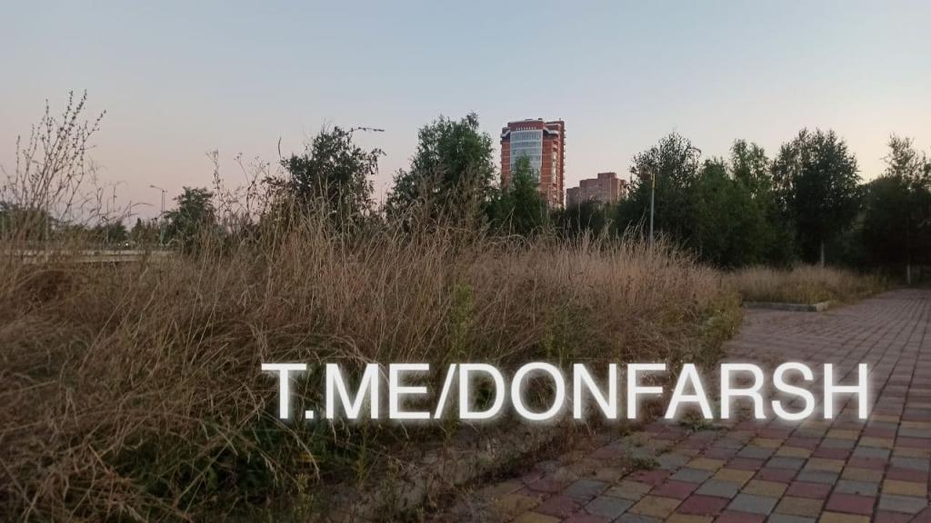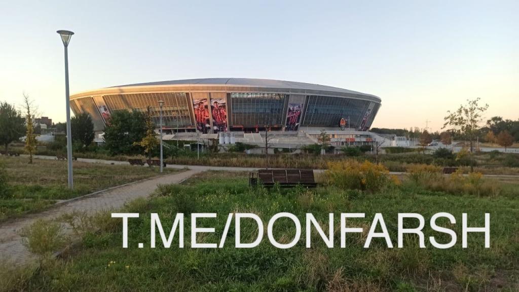 В неподконтрольном Украине Донецке в парковой зоне вокруг известного стадиона «Донбасс-Арена» на данный момент не кошенная трава по пояс и выше, заросшие сорняками дорожки, прогнившие, некрашеные лавочки, особенно это видно со стороны объездной.