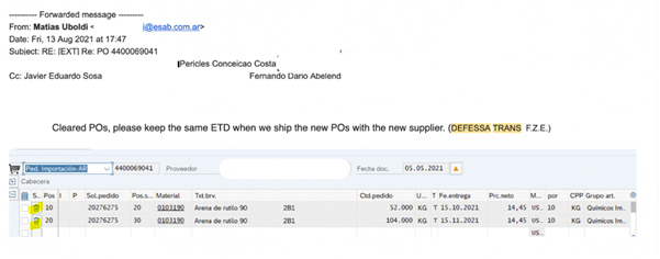13 августа 2012 закупочный менеджер в ESAB в Аргентине, ответственный за закупки для всех заводов ESAB в Латинской Америке, сообщил что поставщиком рутила производства ОГХК для заводов ESAB Group в третьем квартале будет компания Defessa Trans F.Z.E.