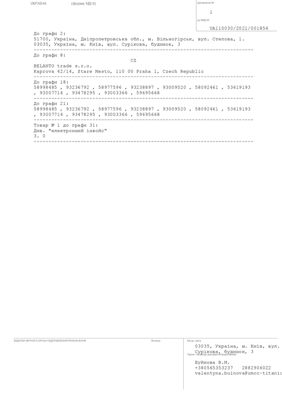 На документах стоят печати Харьковской таможни ГФС, а также Белгородской и Свердловской таможен. На документе стоит также печать ОГХК.