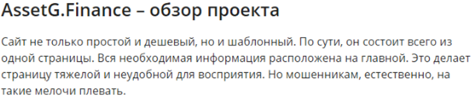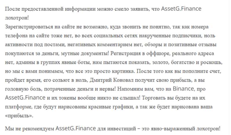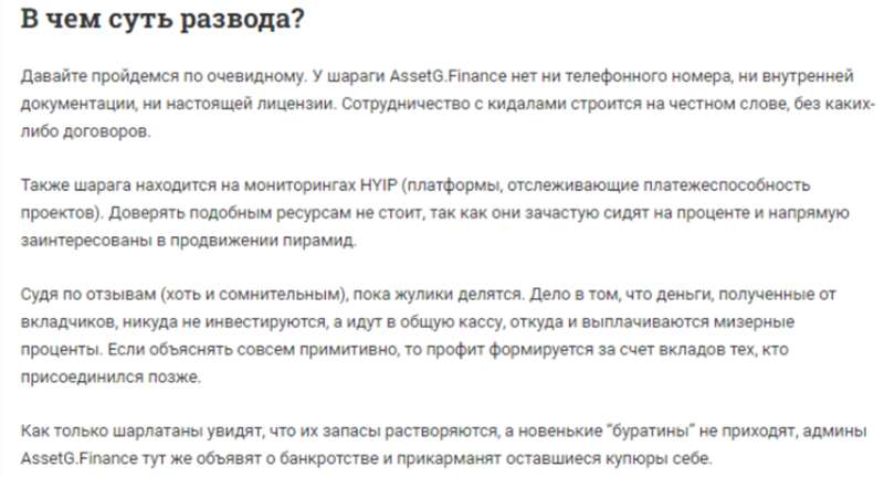 AssetG Finance – большое разоблачение