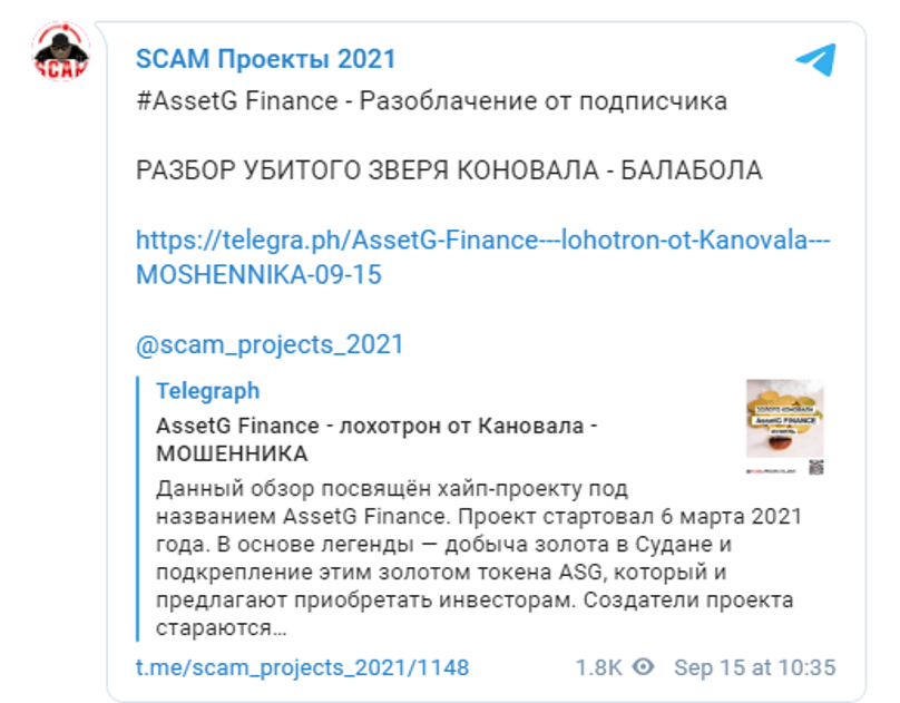 Теперь же Дмитрий Коновал организовал новый проект, с новым названием – «AssetG.Finance» но со старыми схемами.