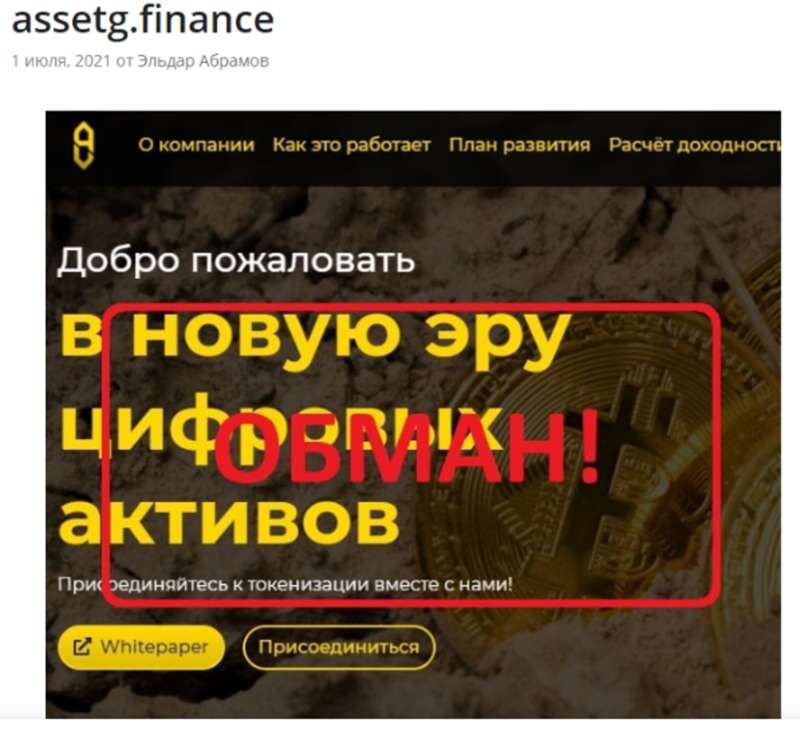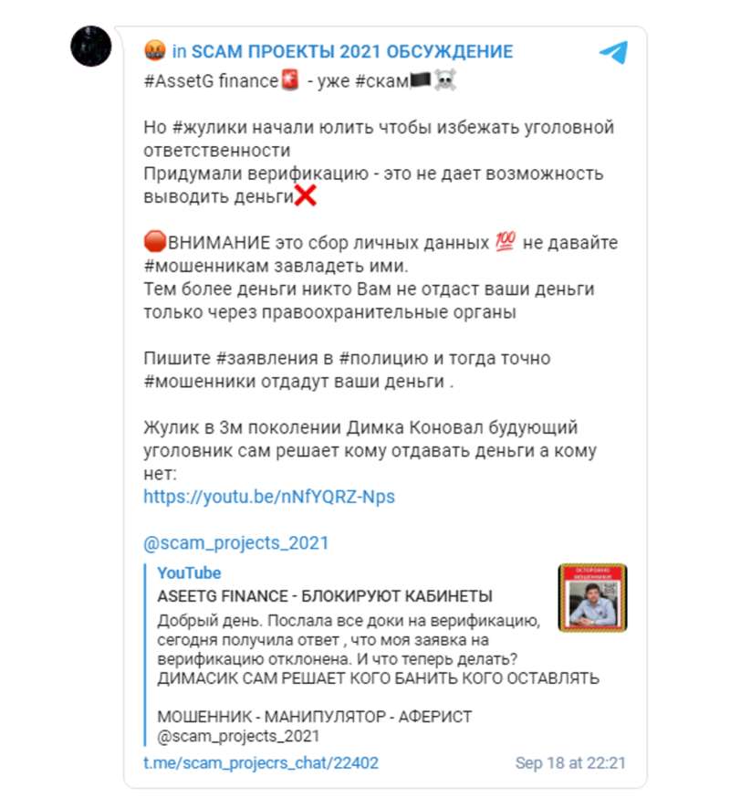 Теги: AssetG.FinanceОбманШувал ДмитрийКоновал ДмитрийМошенничествоАферистыАферытокеныФинансовая пирамидаAssetG Finance