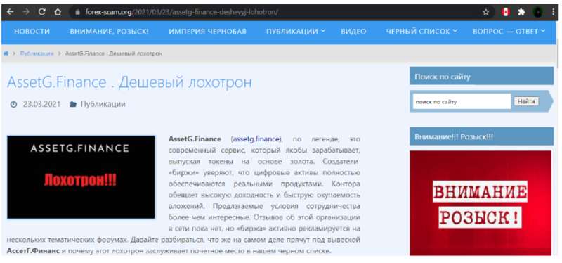 Заходим в google и вбиваем в поиск “AssetG Finance разоблачение”:
