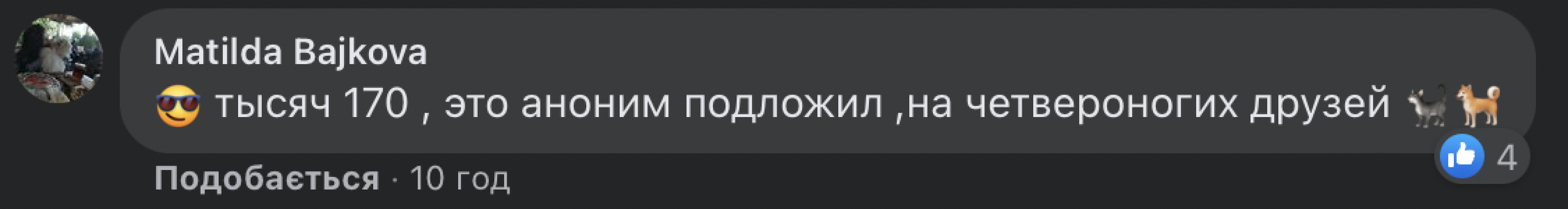 Подписчики женщины в комментариях призвали ее оставить деньги себе и направить их на помощь животным, однако в результате она к этому совету не прислушалась. Поэтому на приют пойдут всего 100 гривен.