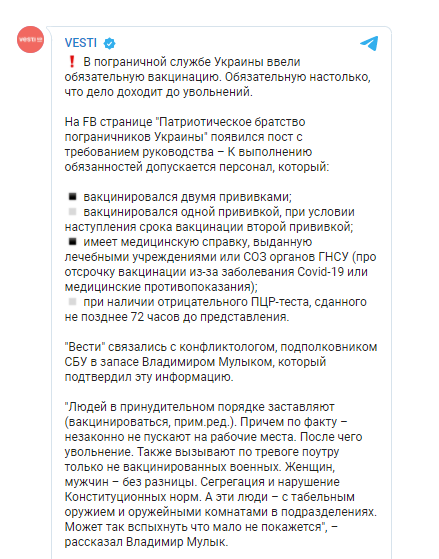 Также указывается, что смены, на которые будет не допущен сотрудник, зафиксируют как неявку на работу, назначат служебное расследование, по результатам которого привлекут к ответственности. А при наличии двух-трех взысканий грозят увольнять из рядов Госпогранслужбы.