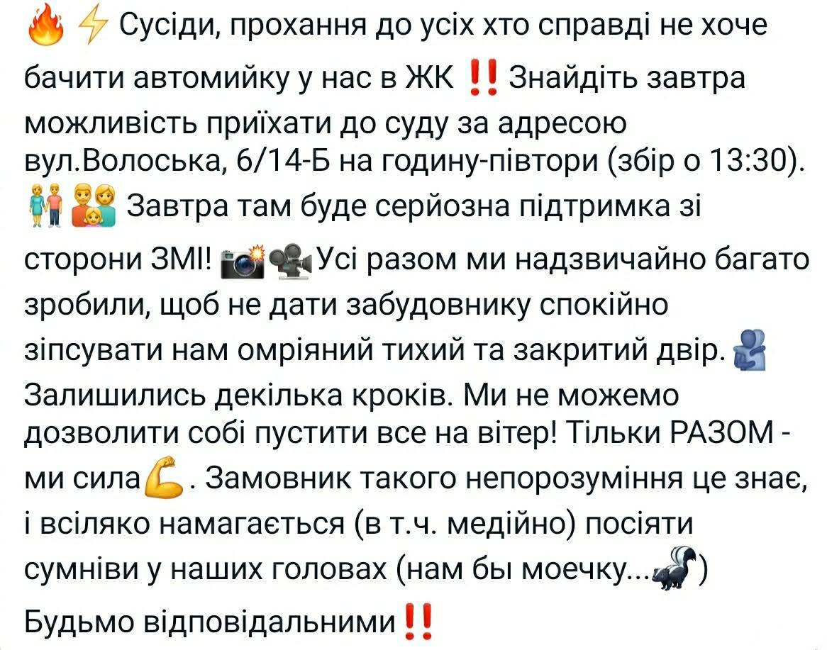Продажность активистов подтверждается как вышеперечисленными фактами, так и тем, что на суд по «громкому» и «скандальному» делу мойки пришли ни много ни мало – 15 человек из 3 тысяч жителей «Миста квитив».